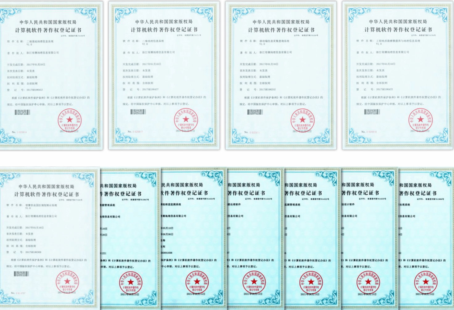 乙级测绘资质证书,涵盖摄影测量与遥感、界线与不动产测绘、地理信息系统工程、互联网地图服务等;环境管理体系认证证书,公司已通过ISO 14001环境管理体系认证…